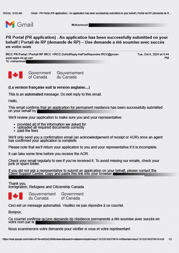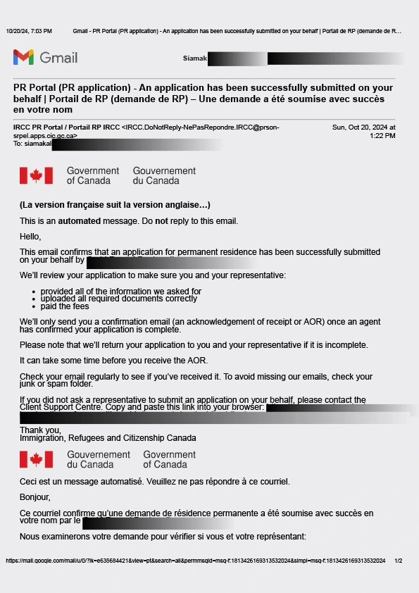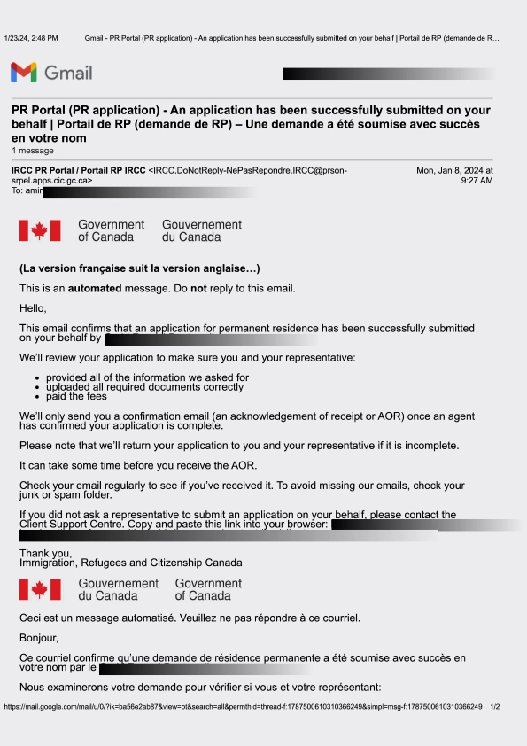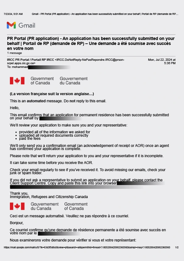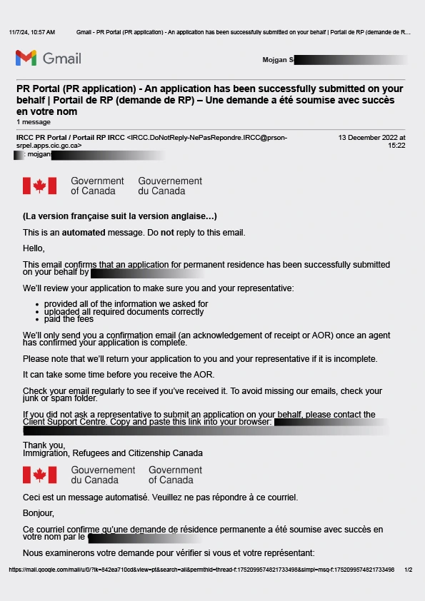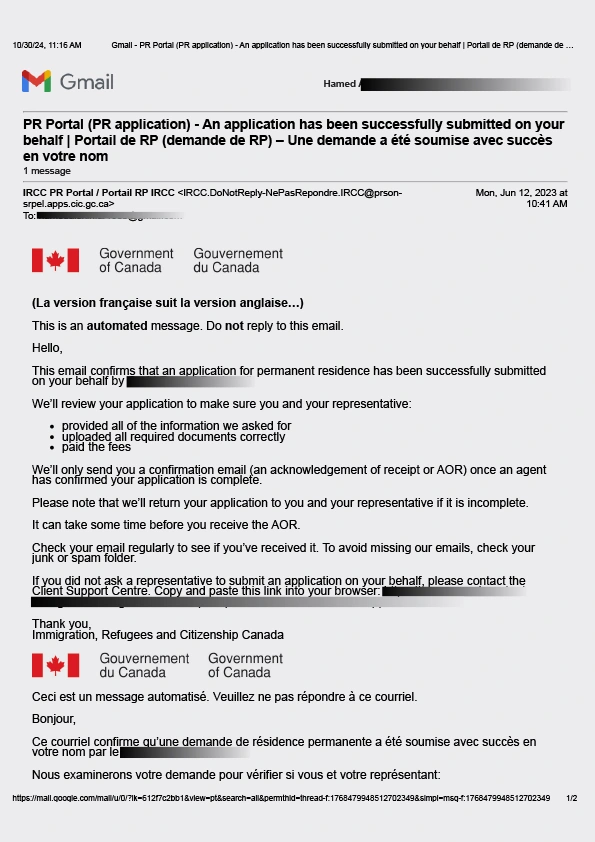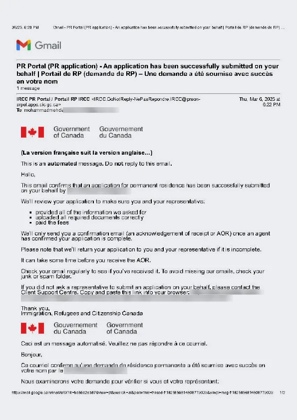سابمیت پرونده در ادامه مهاجرت کانادا