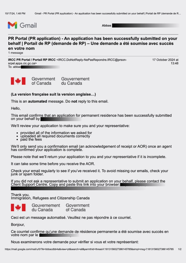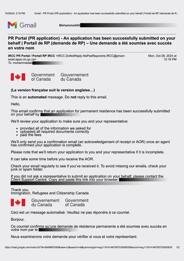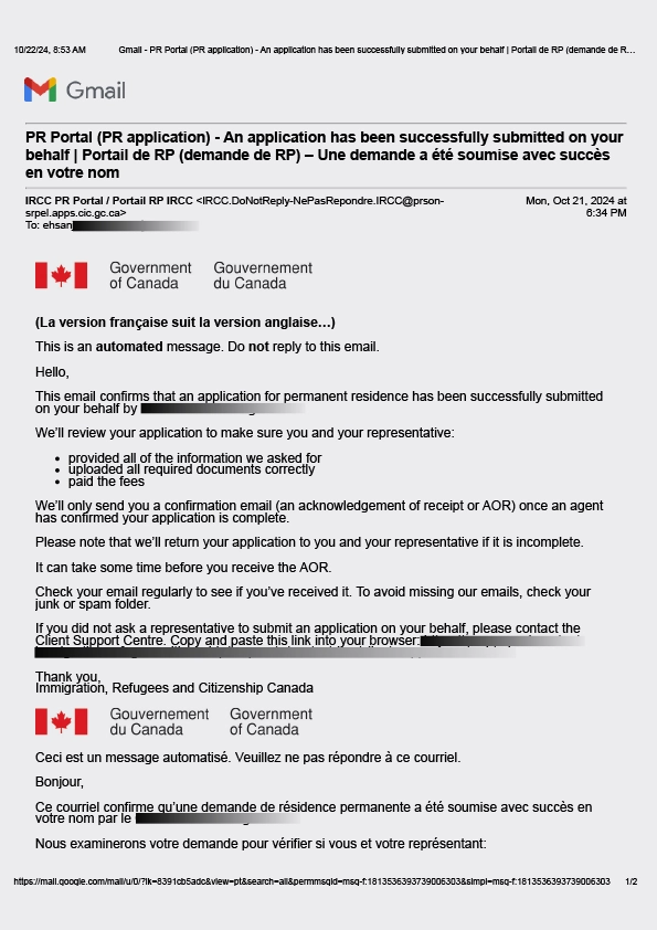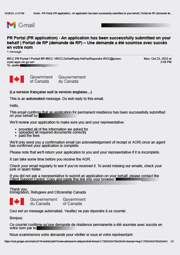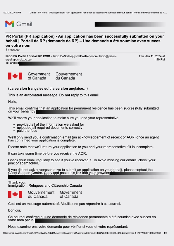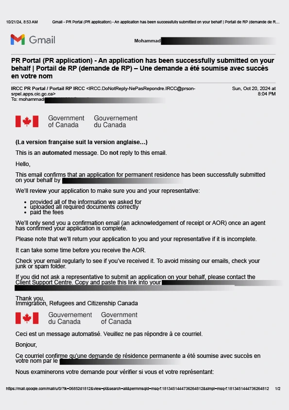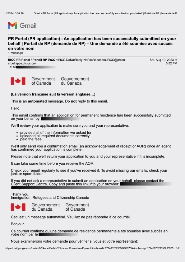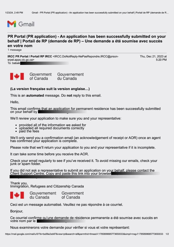 سابمیت پرونده در ادامه مهاجرت کانادا