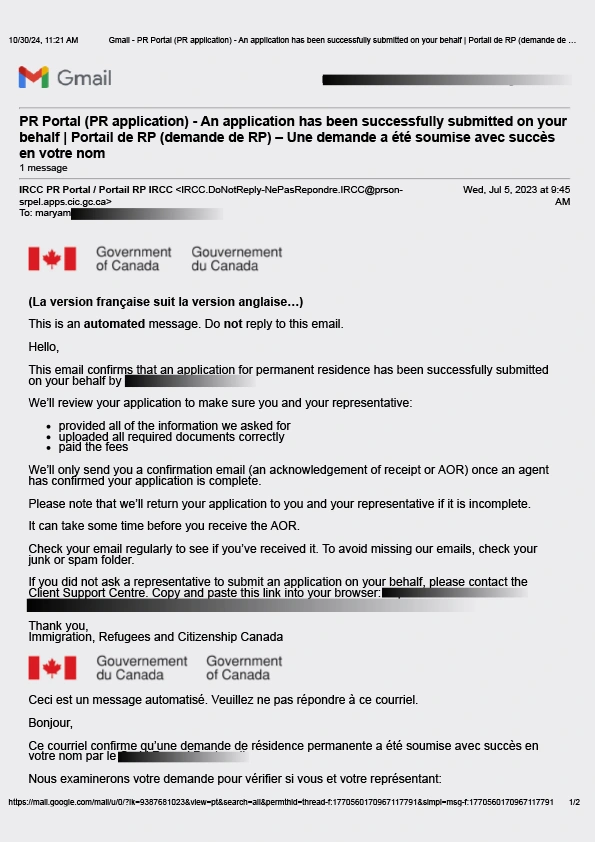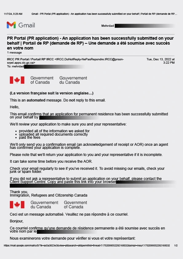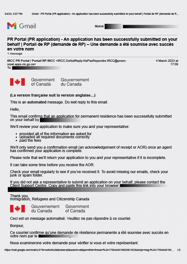 سابمیت پرونده در اداره مهاجرت کانادا