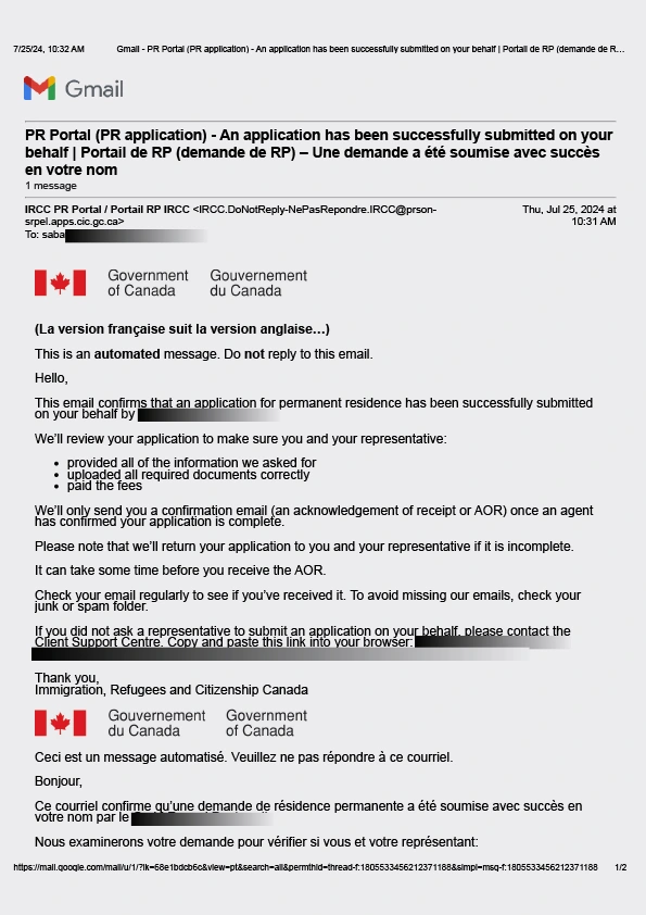 نامه سابمیت کلاینت در لاین جابآفر کانادا