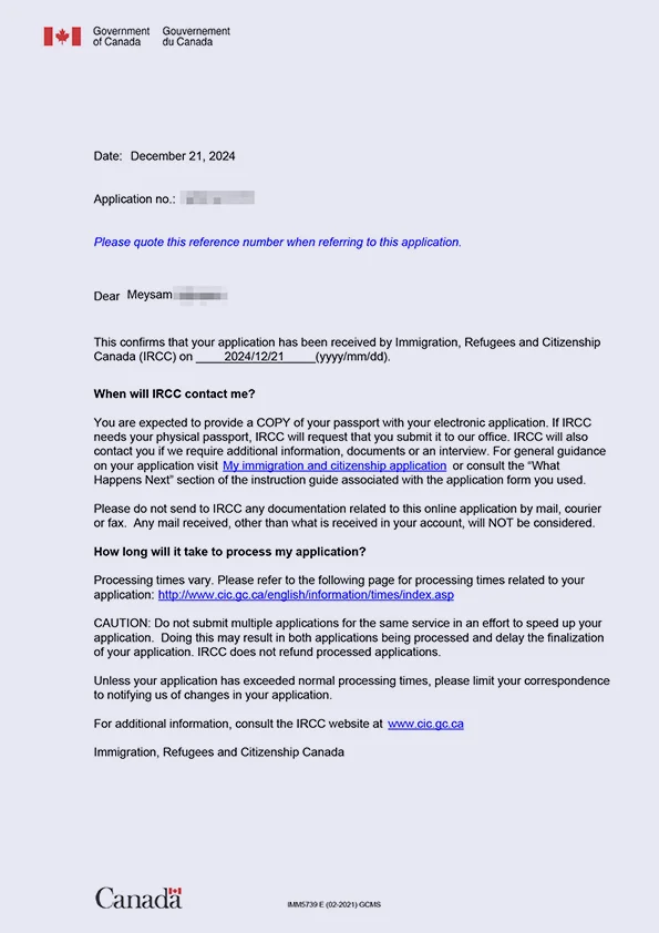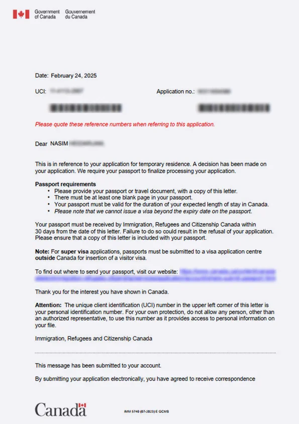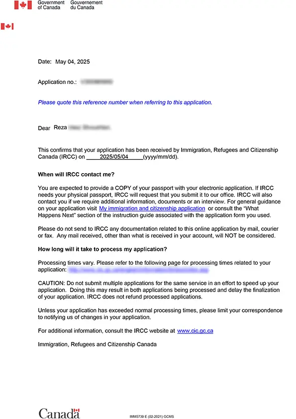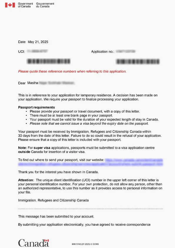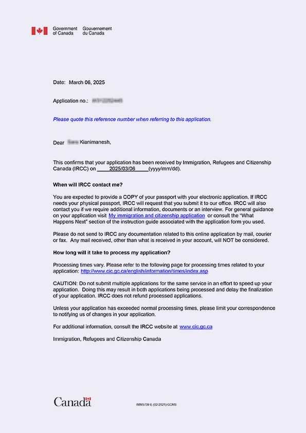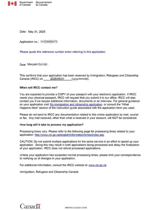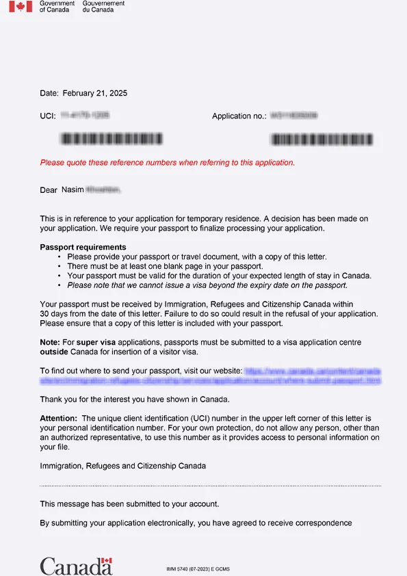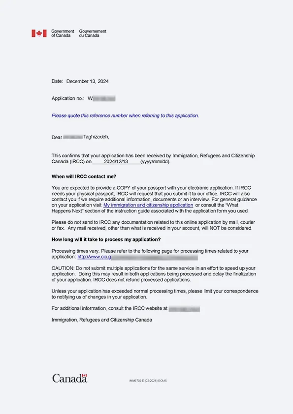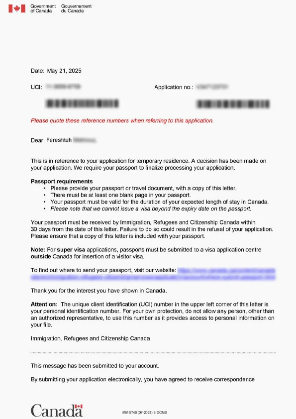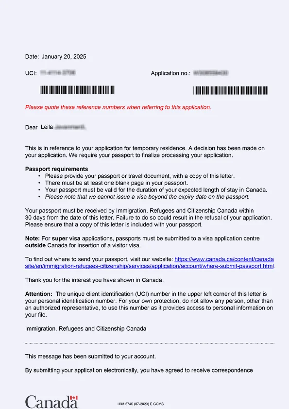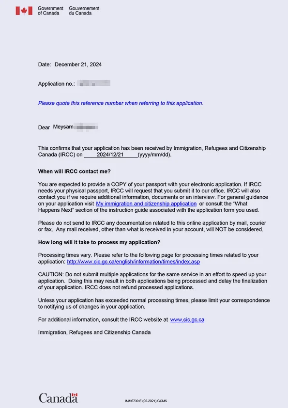 نامه سابمیت ویزای توریستی کانادا