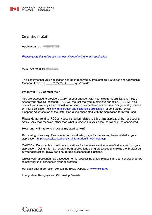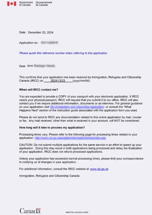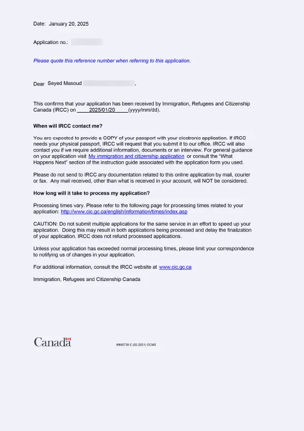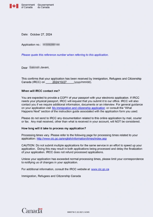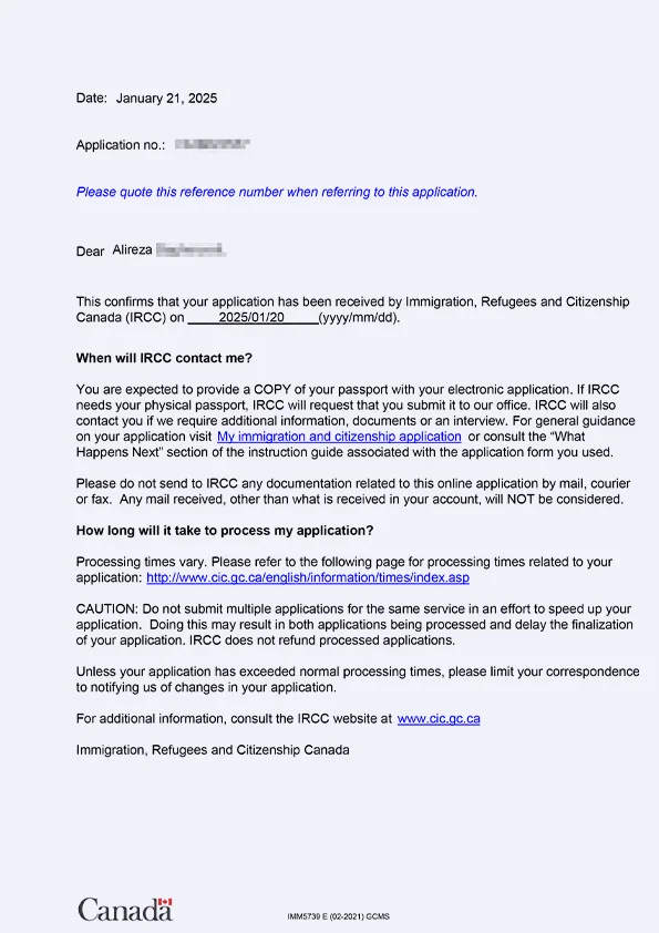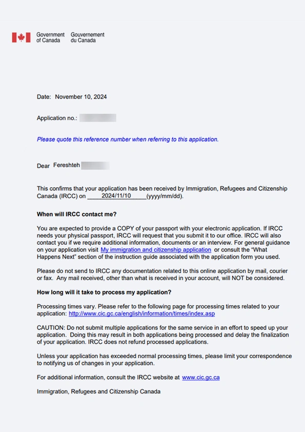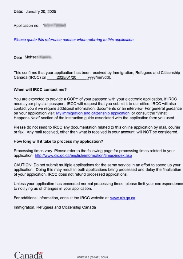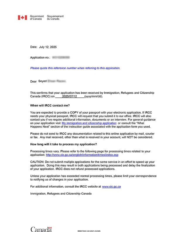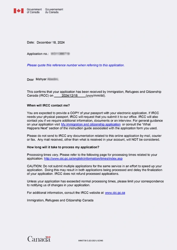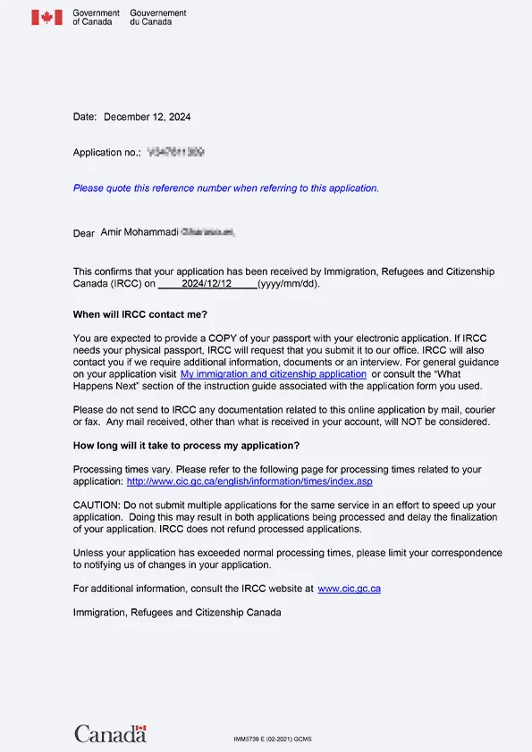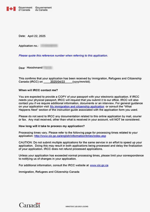نامه سابمیت ویزای توریستی کانادا