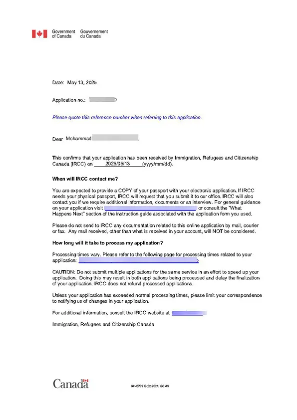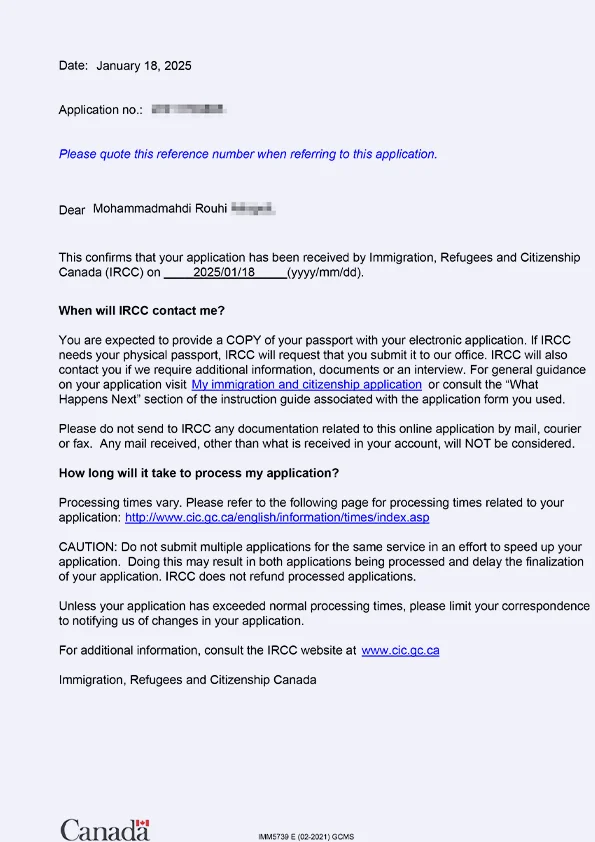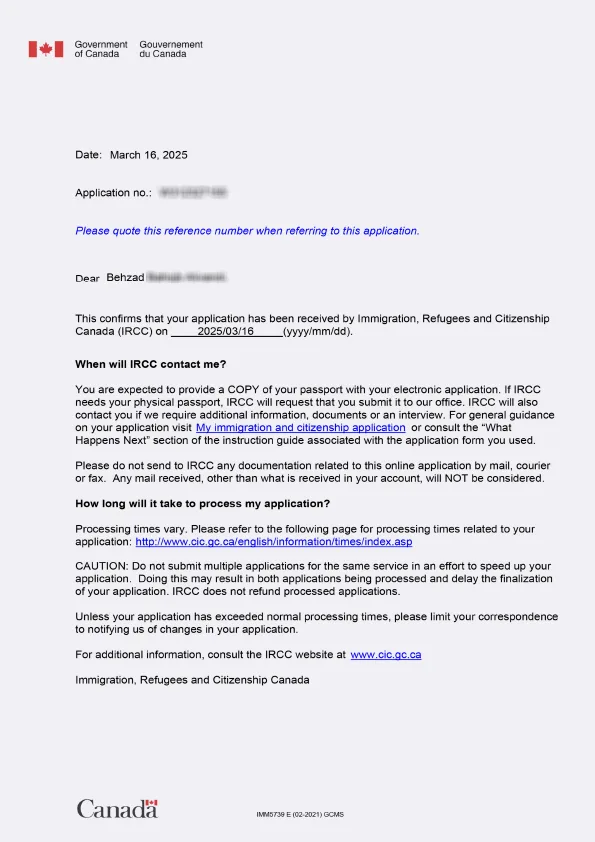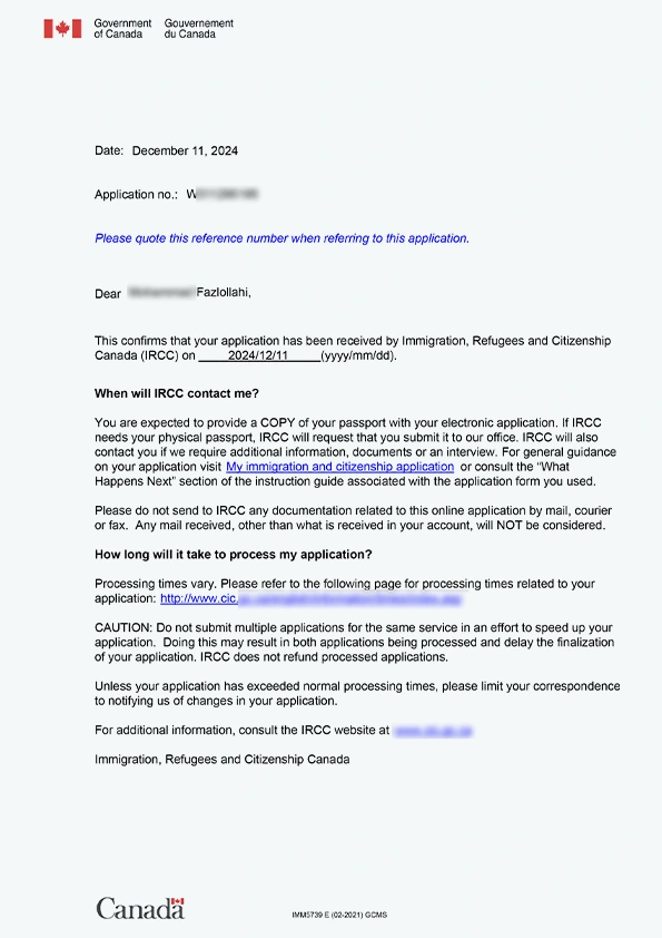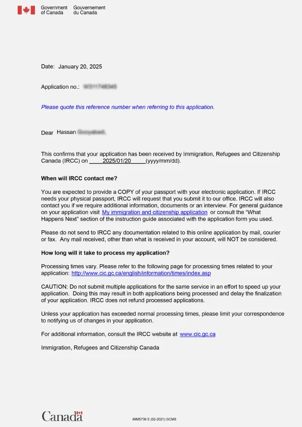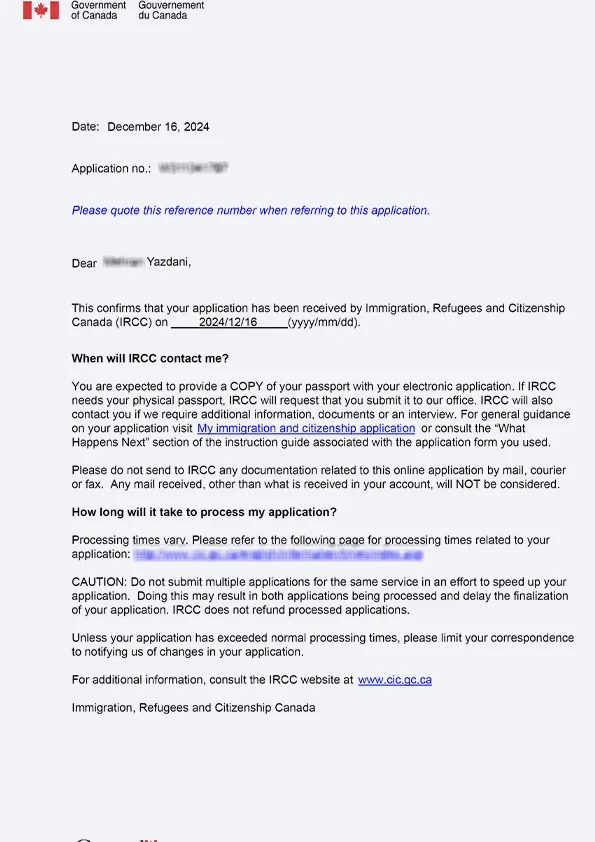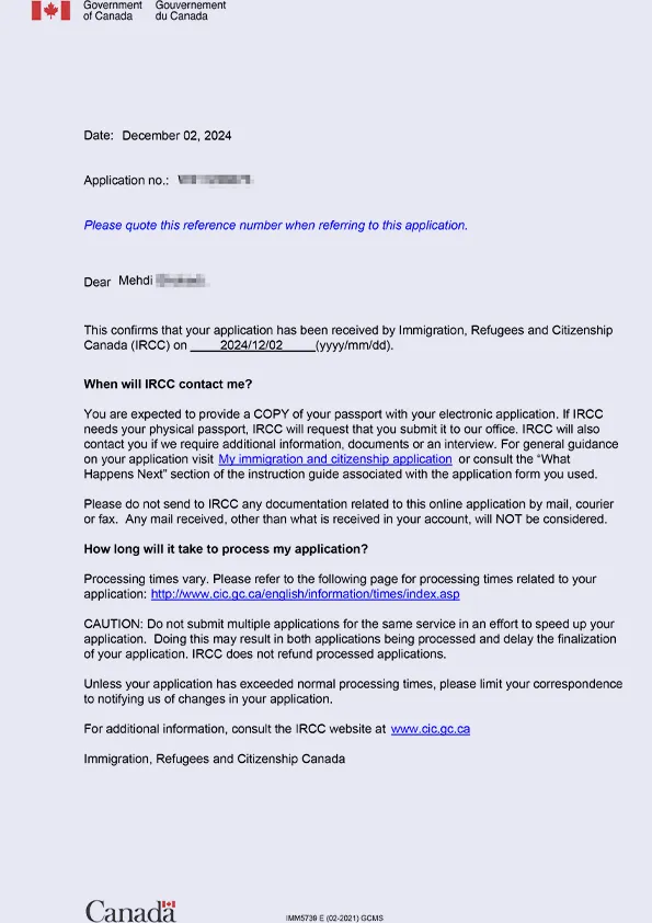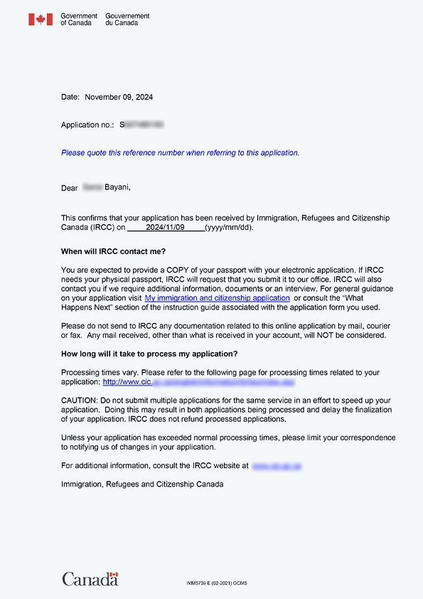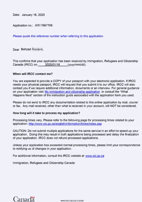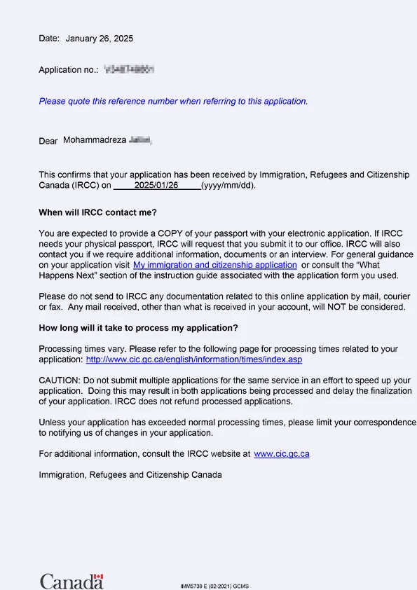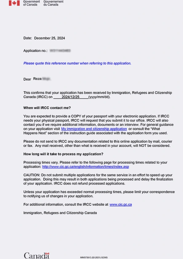 نامه سابمیت ویزای توریستی کانادا