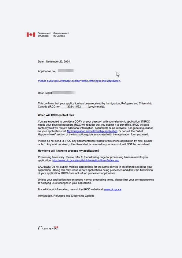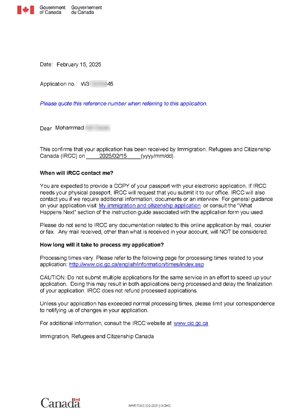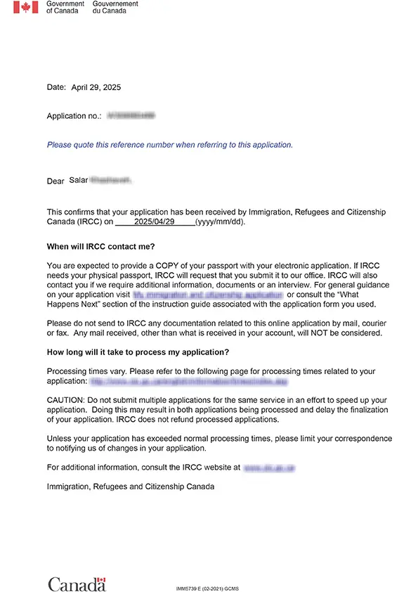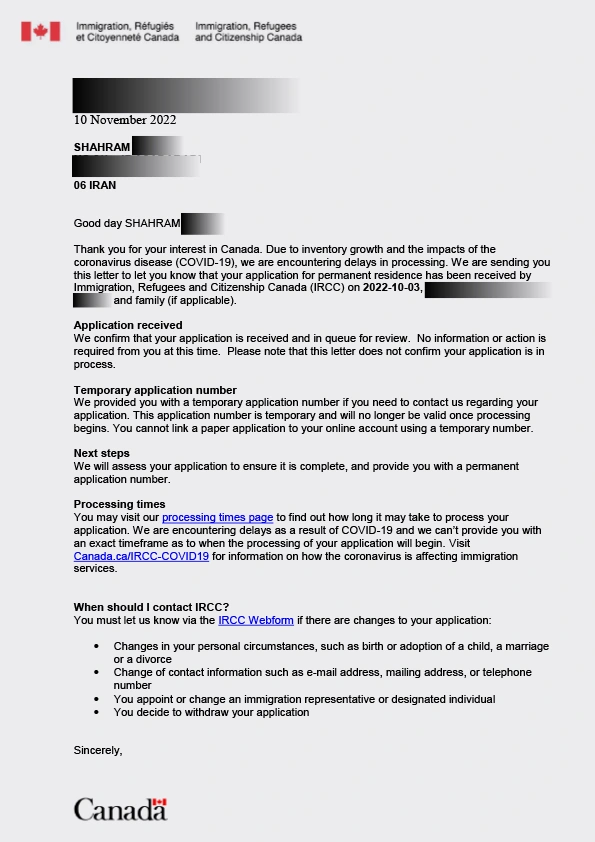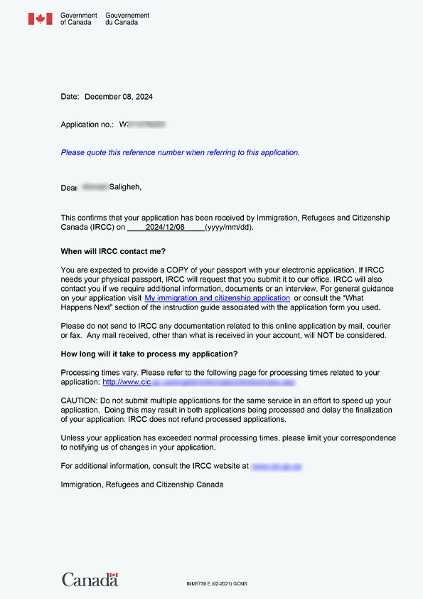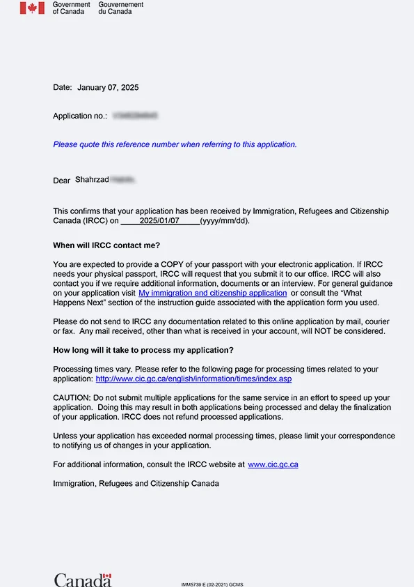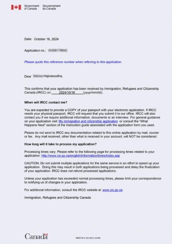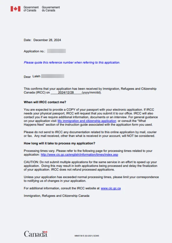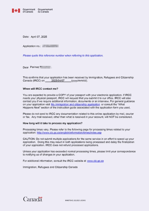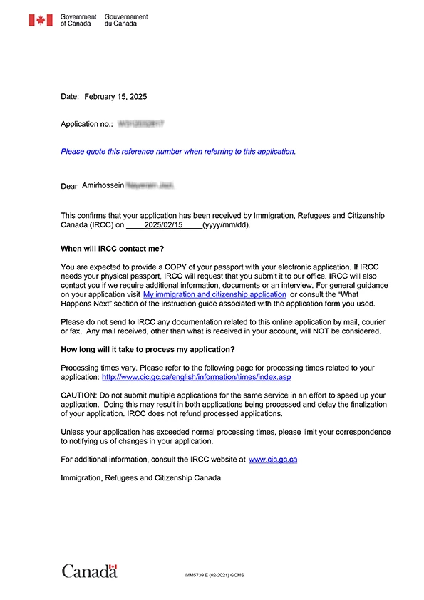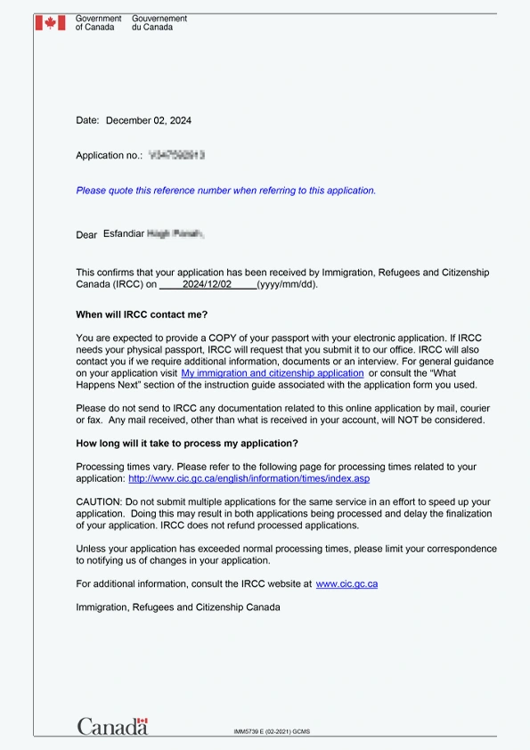نامه سابمیت ویزای توریستی کانادا