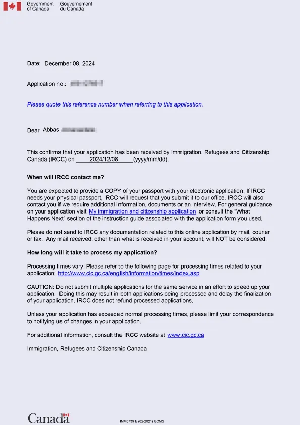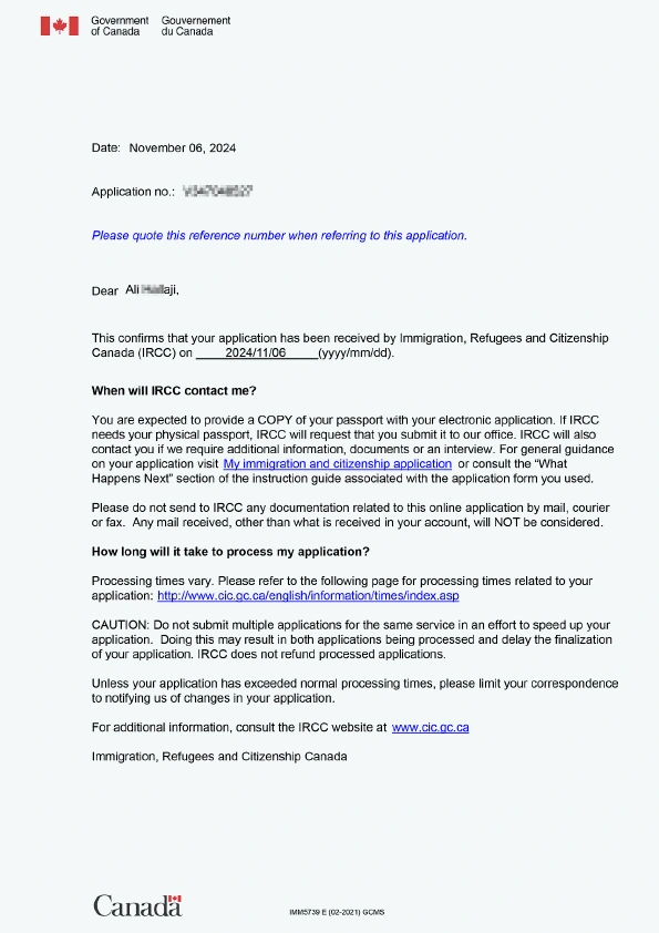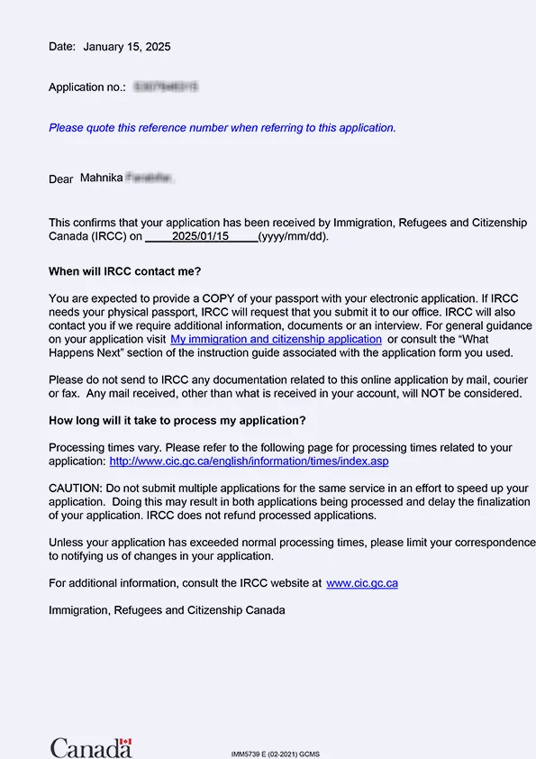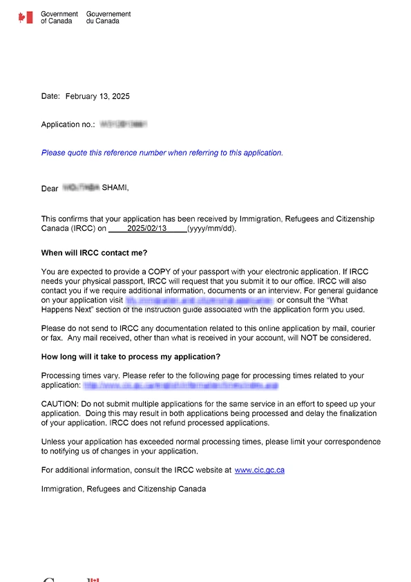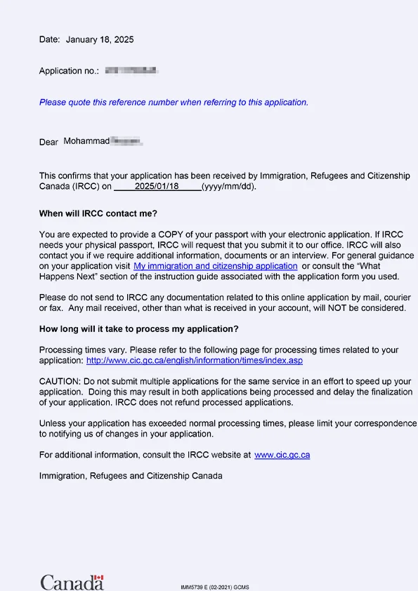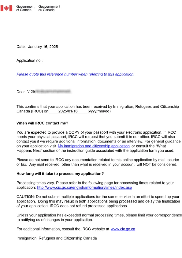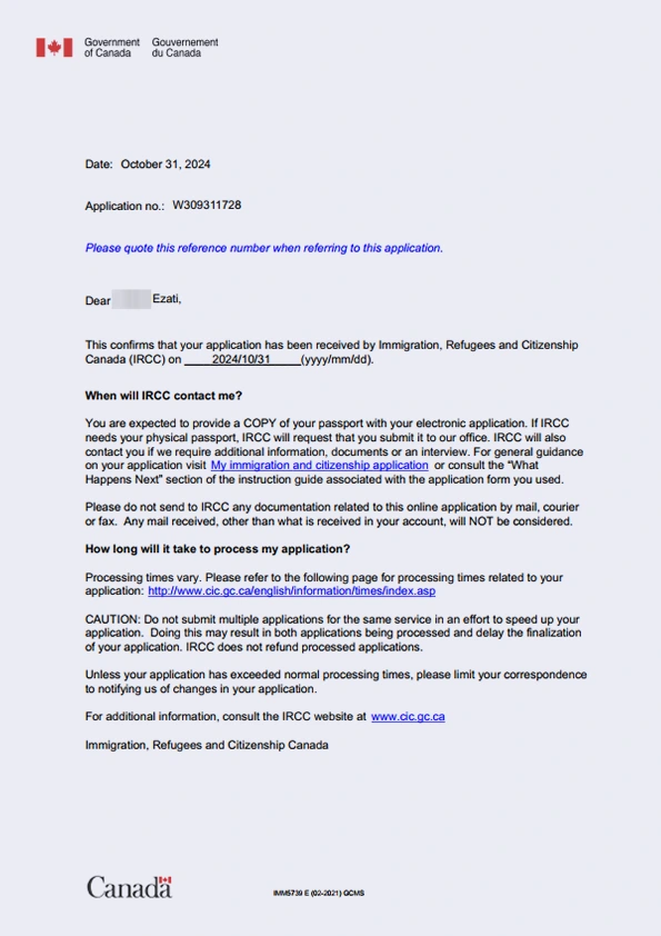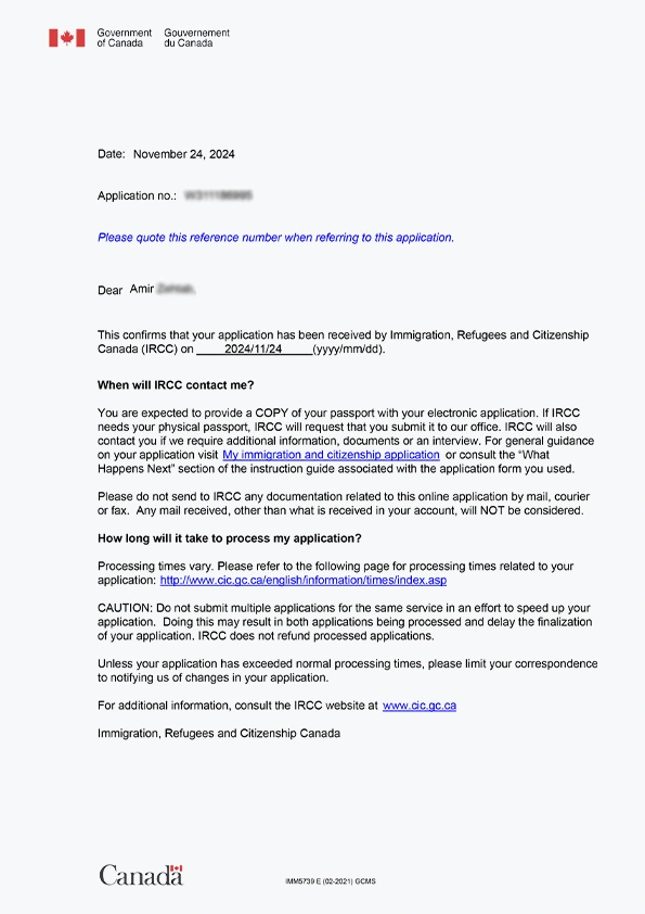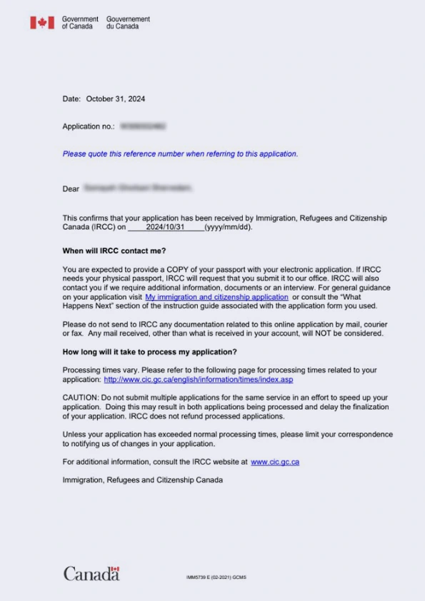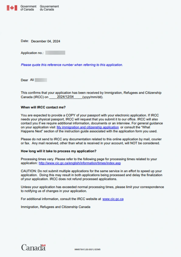 نامه سابمیت ویزای توریستی کانادا