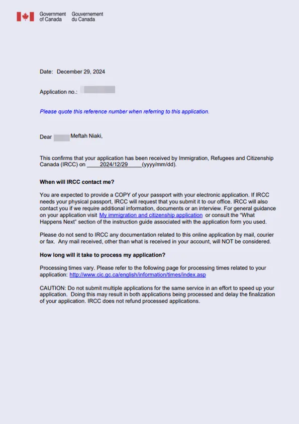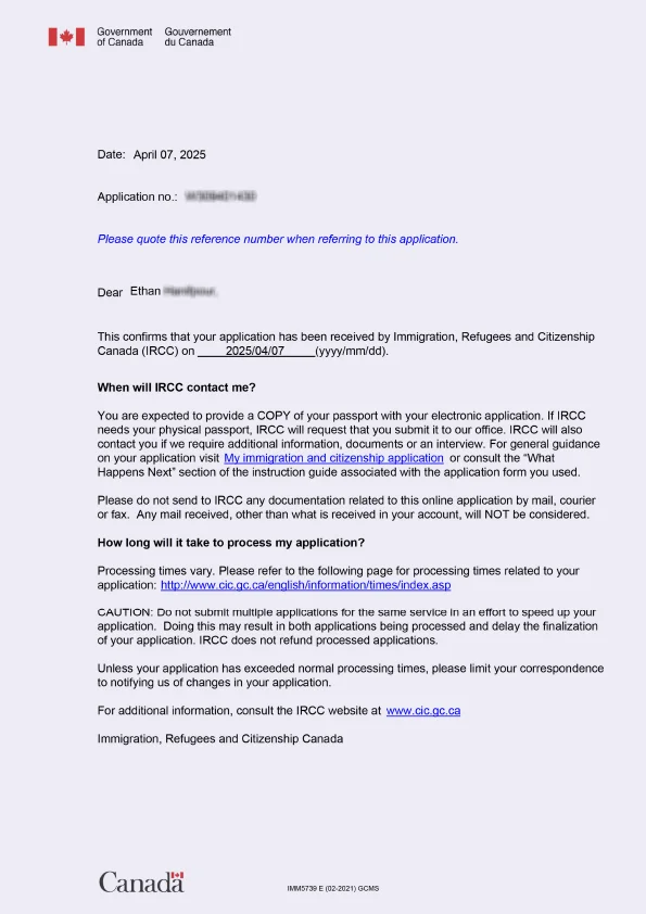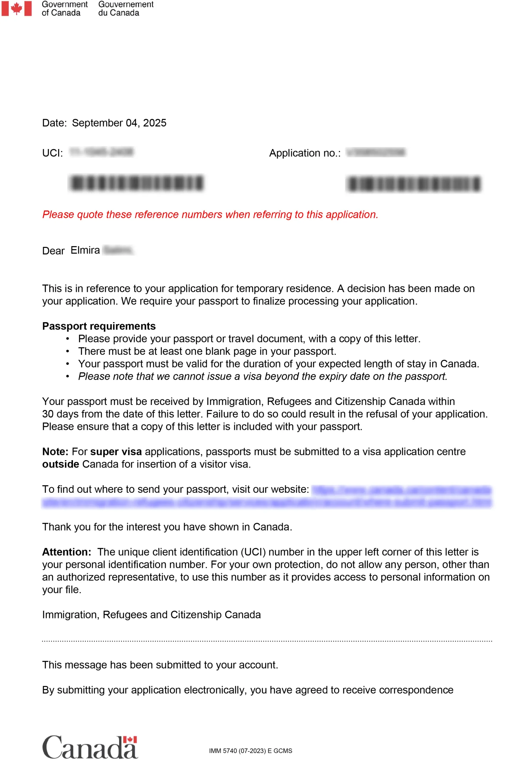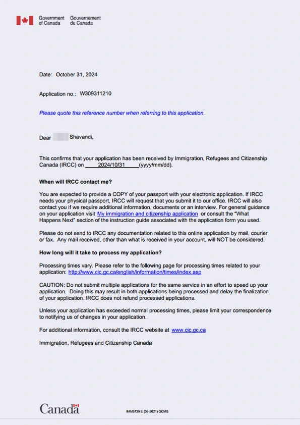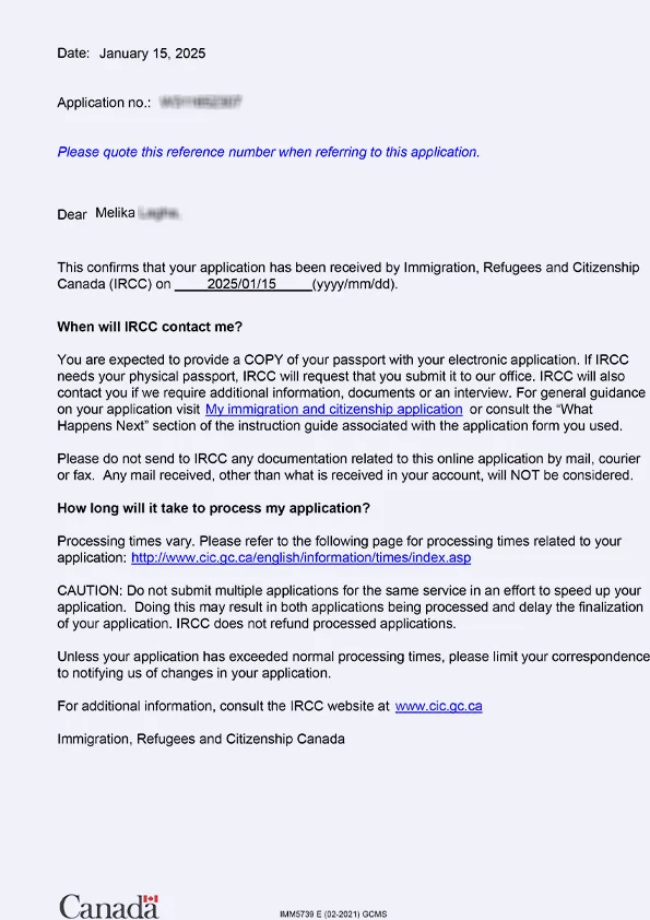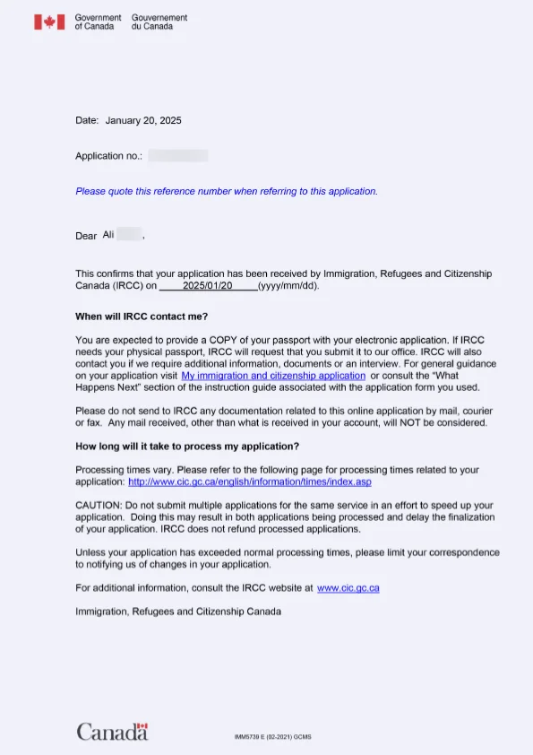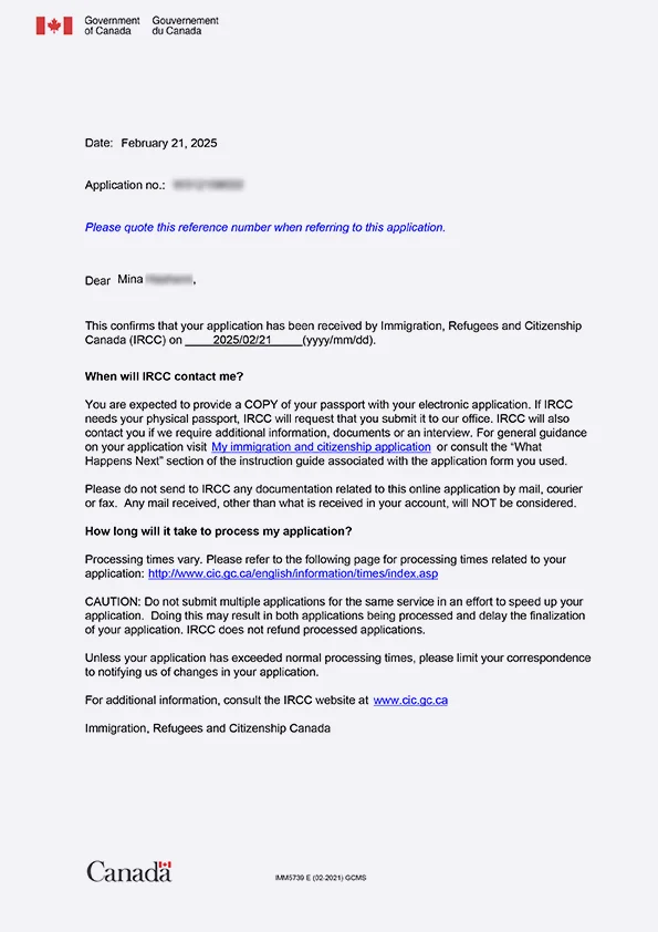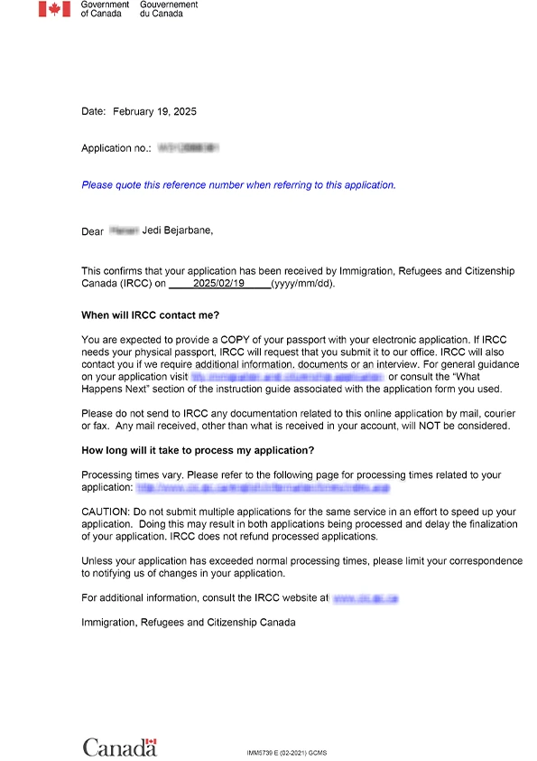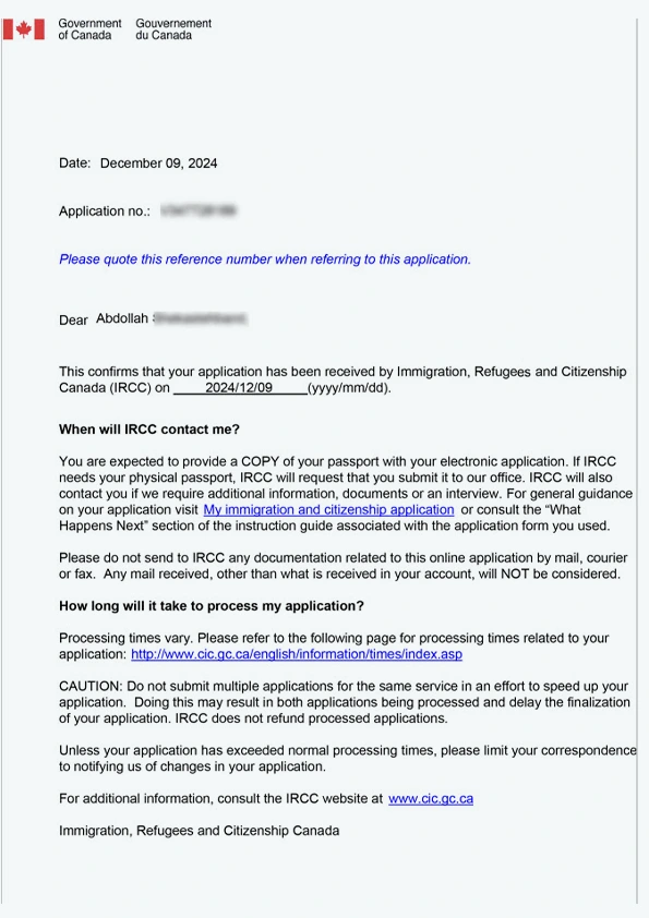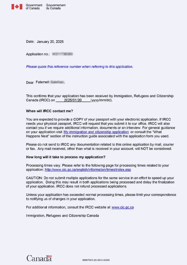 نامه سابمیت ویزای توریستی کانادا