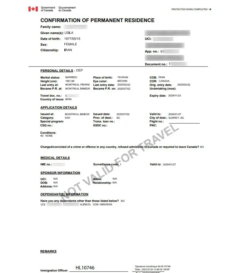 تبدیل اقامت موقت کانادا به دائم