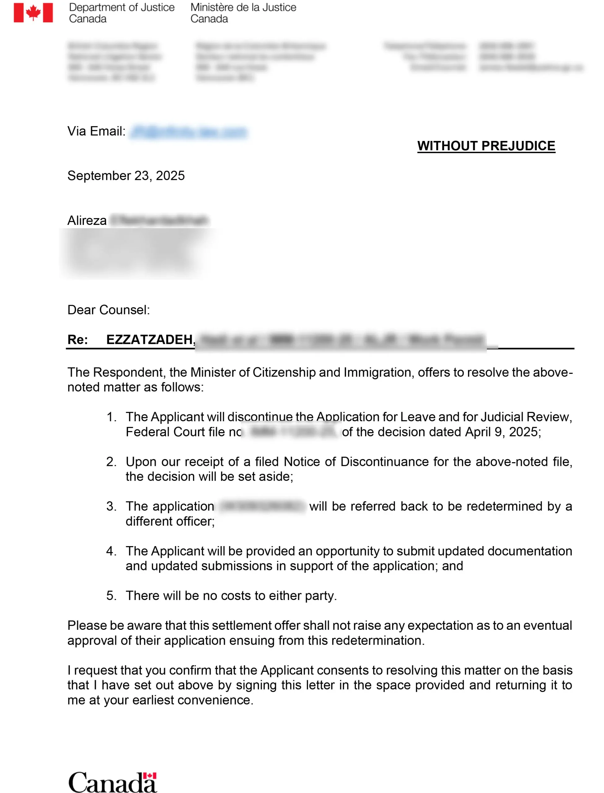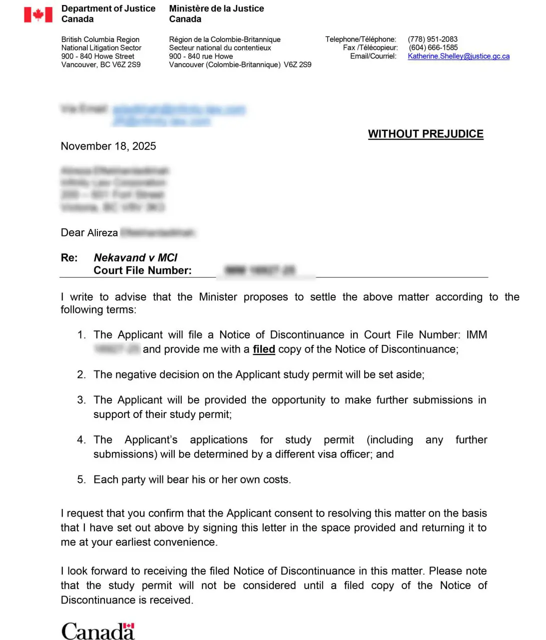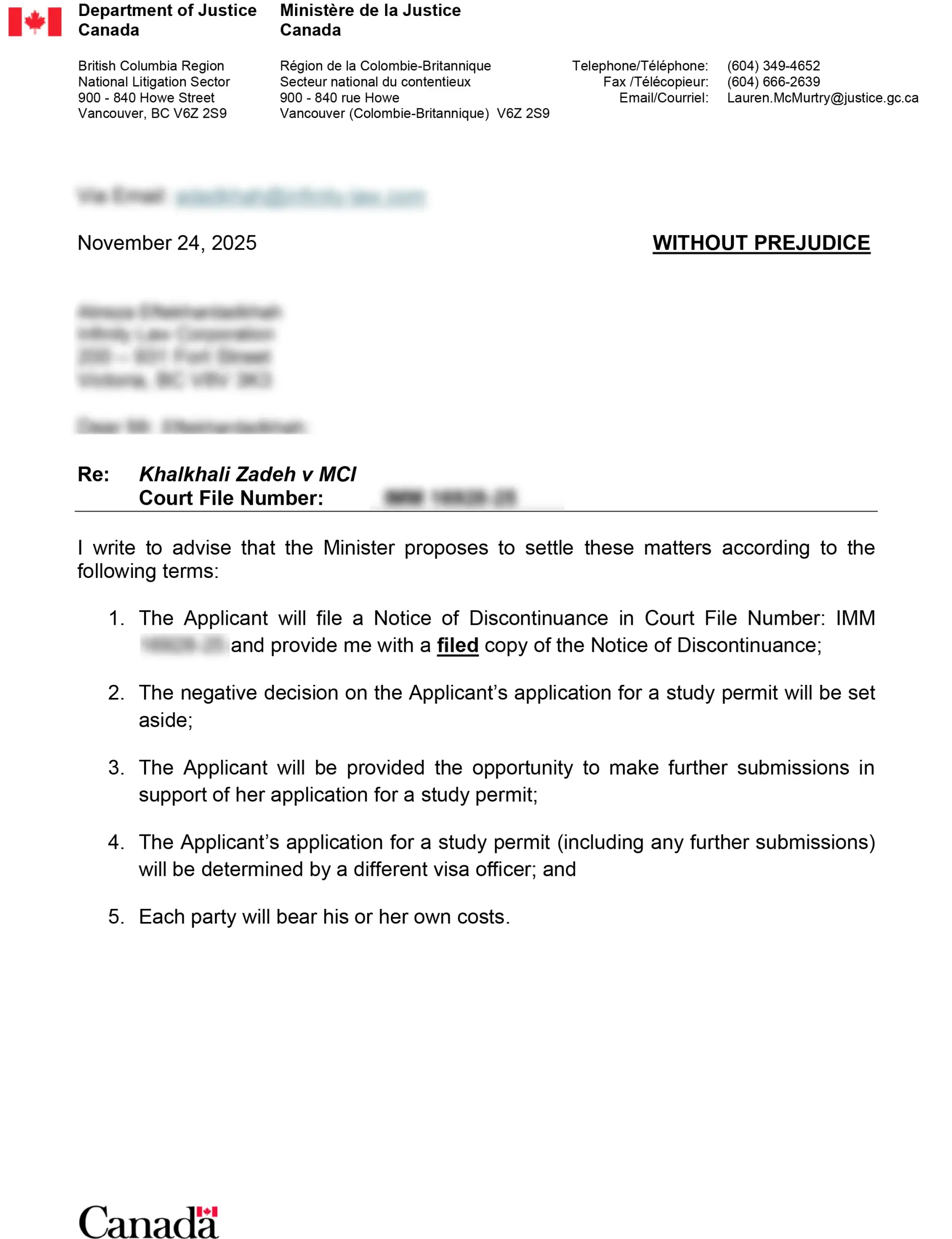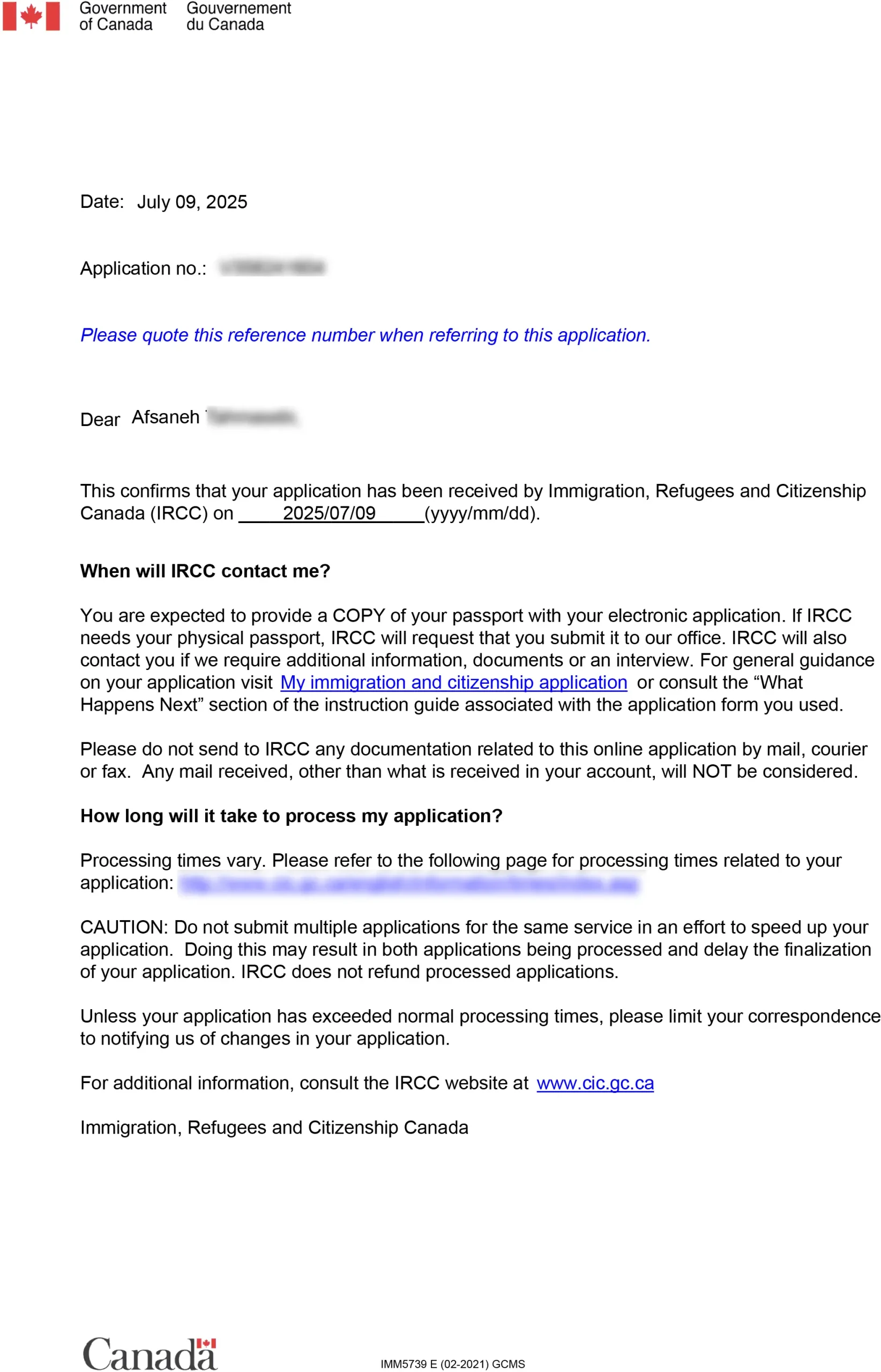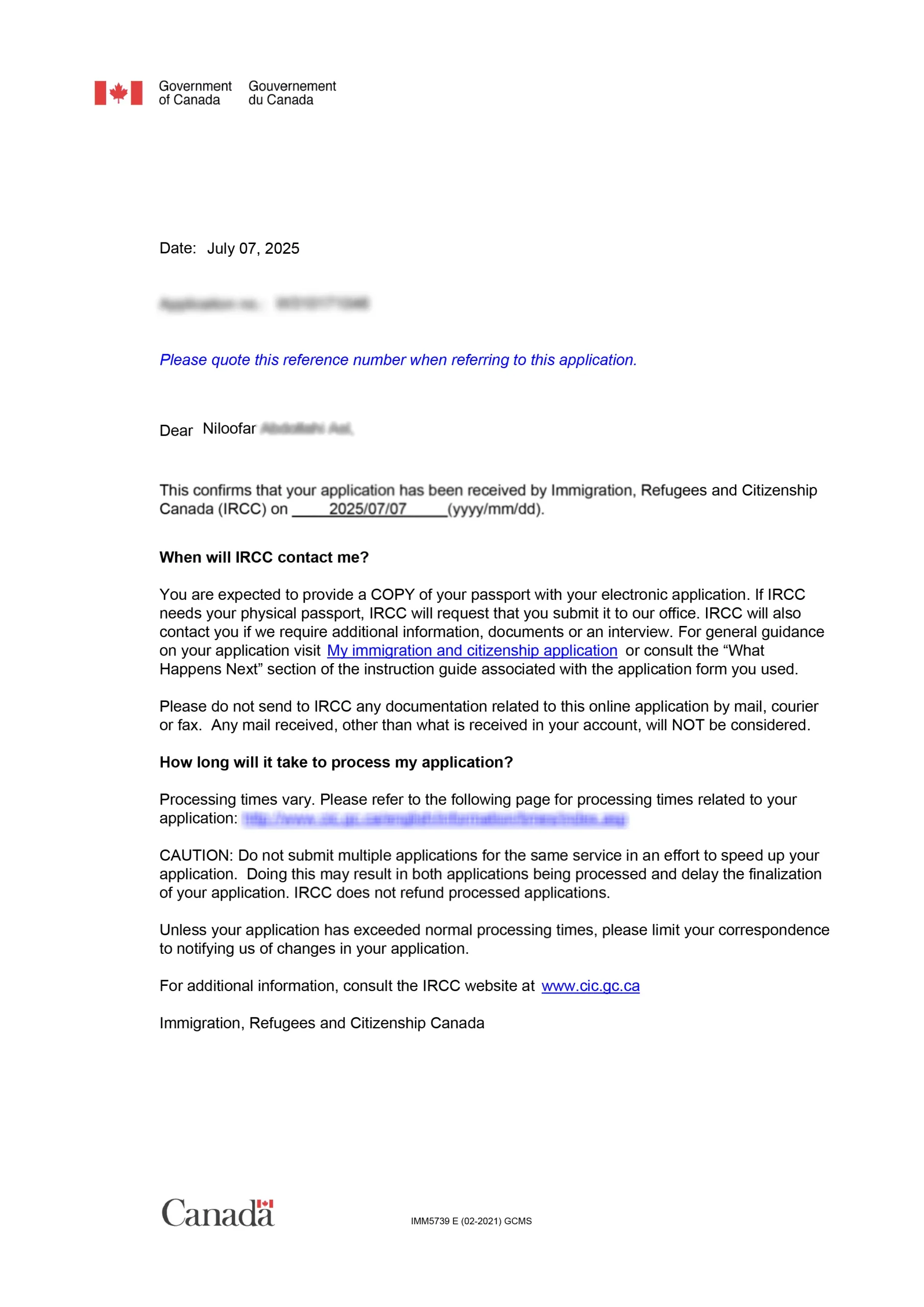 نامه پذیرش مدارک در اداره مهاجرت کانادا