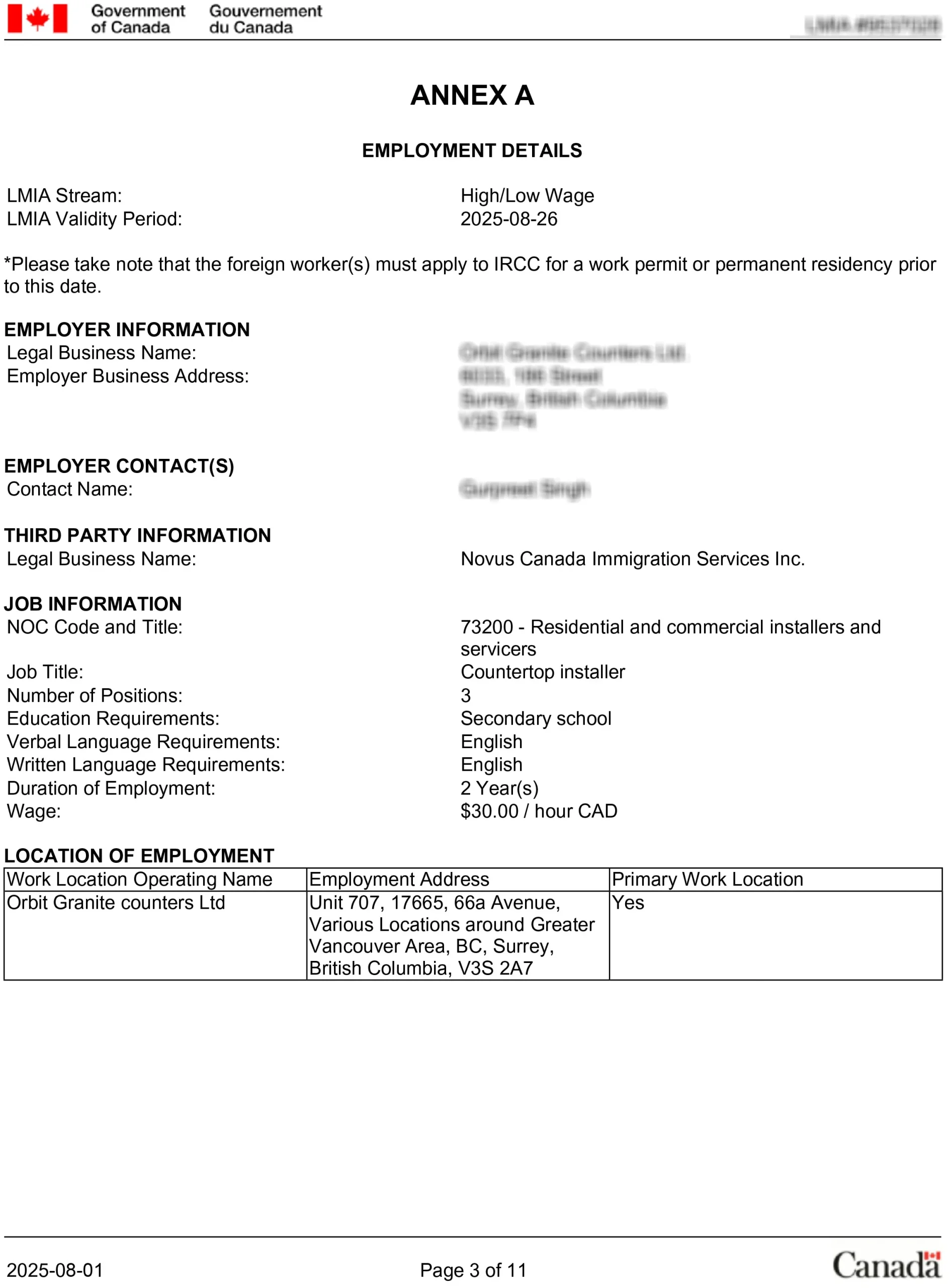 LMIA مثبت شغل سوپروایزر