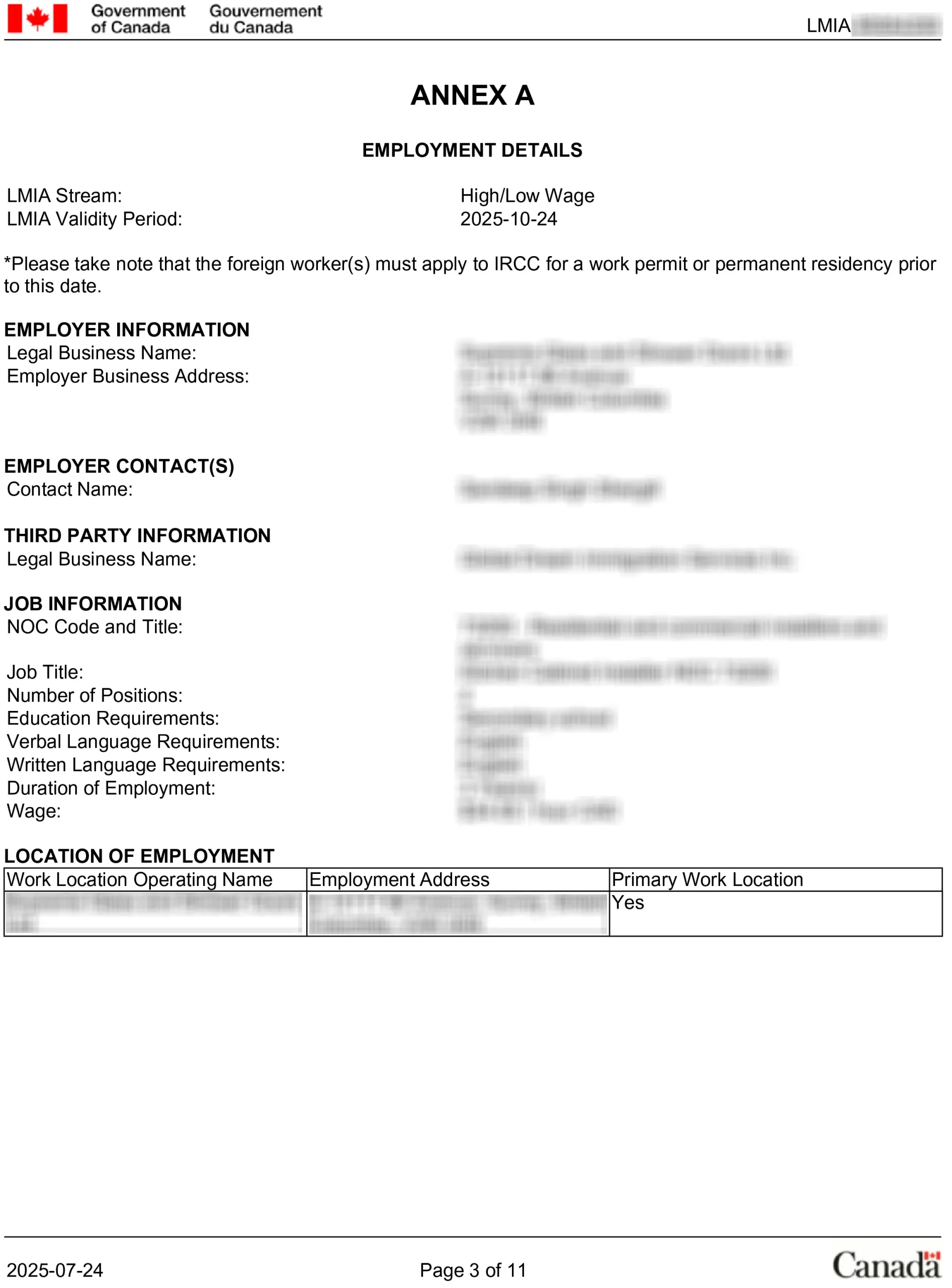 LMIA مثبت کانادا