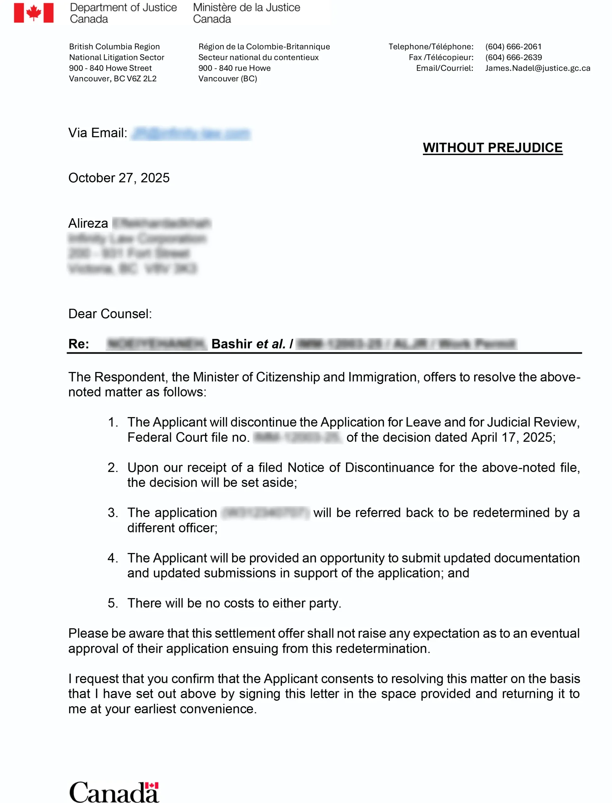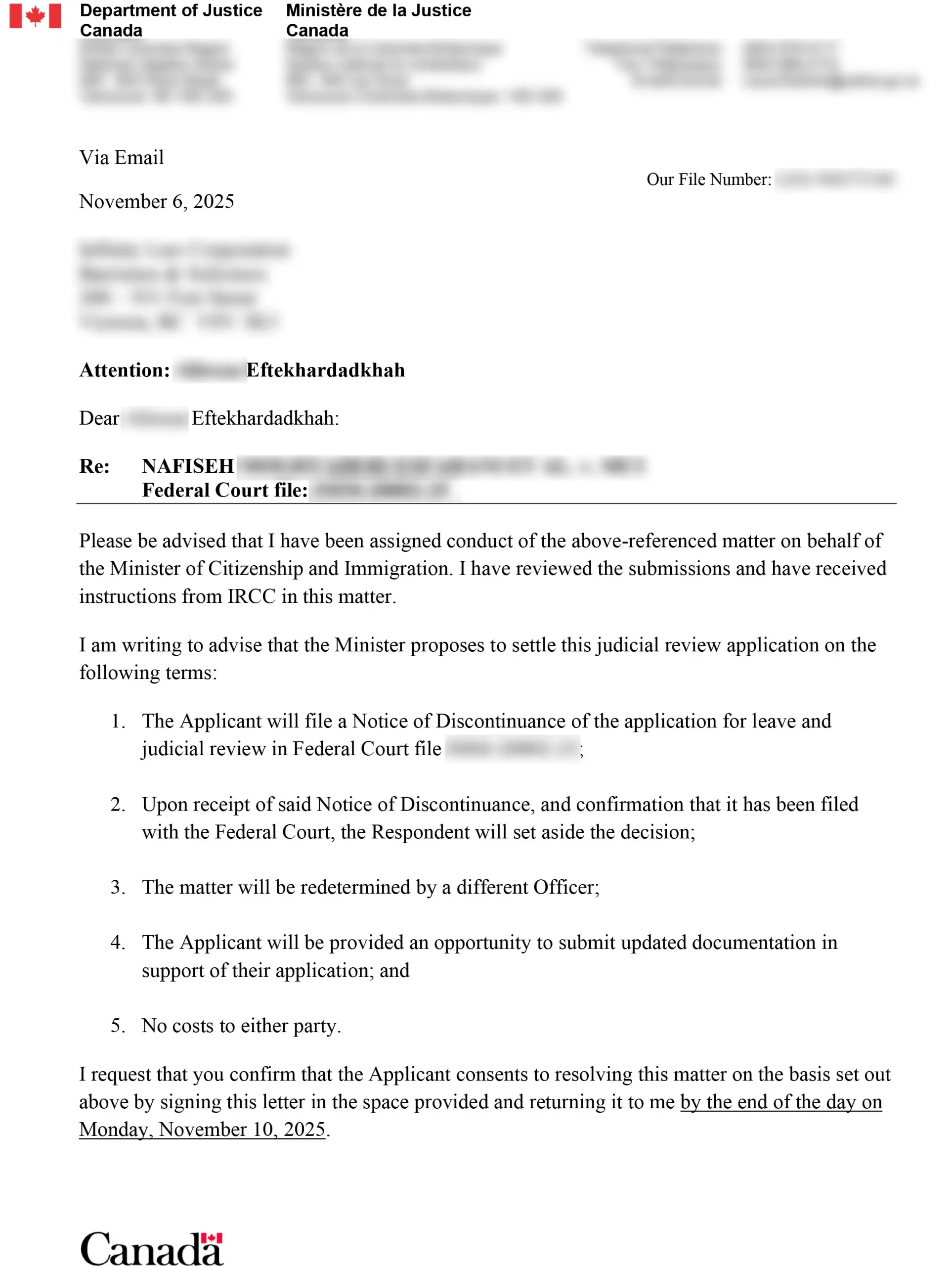 تایید مدارک کلاینت در اداره مهاجرت کانادا