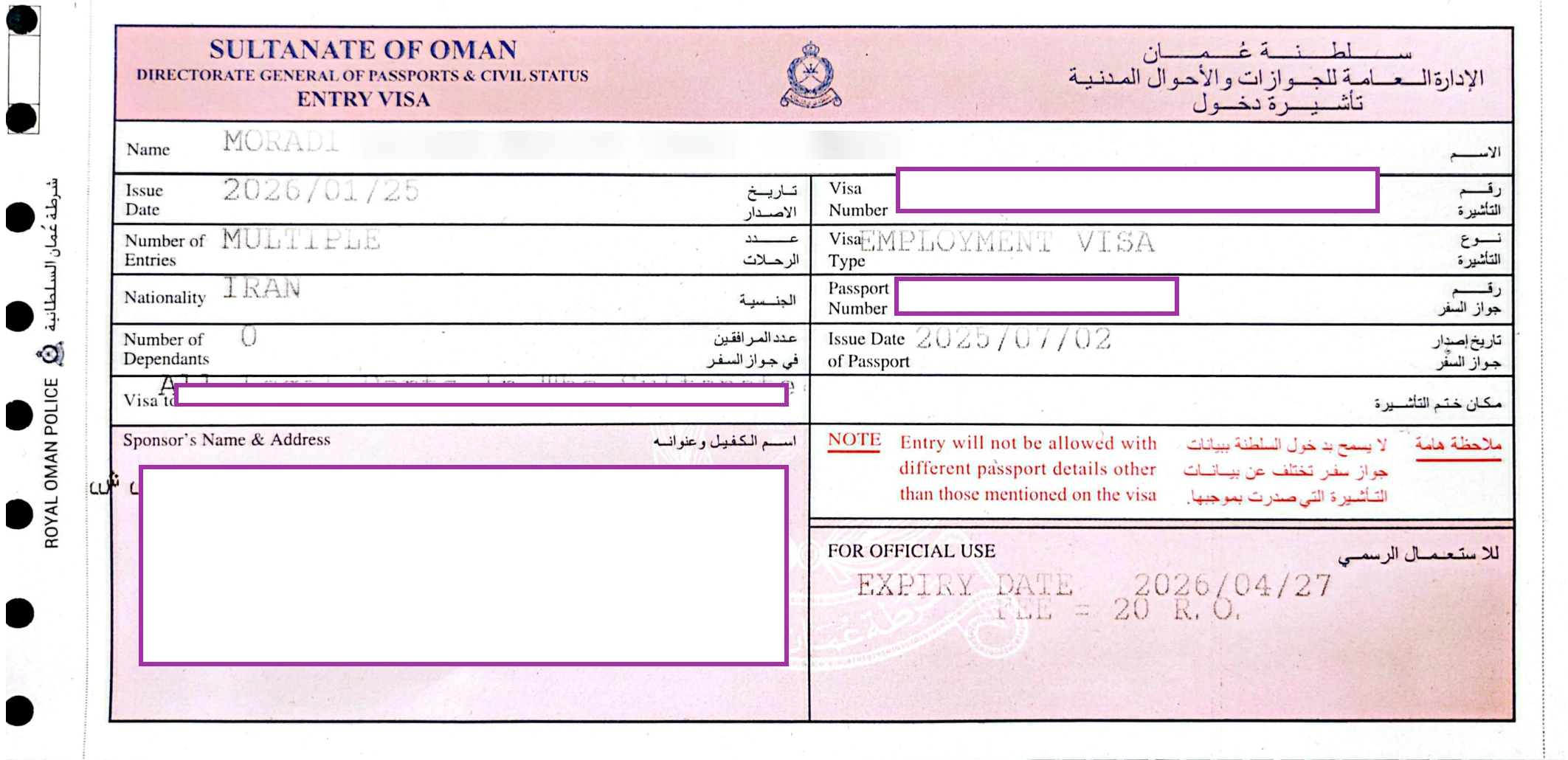 کارت اقامت عمان خانواده (ثبت شرکت)